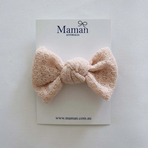 Maman Australia - Baby Girls Soft Cotton Knotted Bow Headband 3 Colors - White, Powder Pink or Biscuit