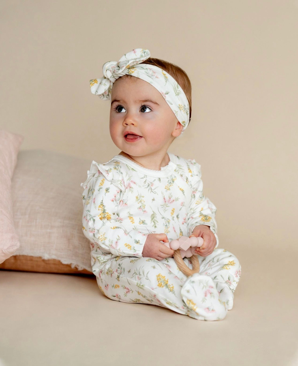 Soft, sweet and thoughtfully designed for those precious early days, this beautifully illustrated zip suit wraps little ones in comfort from cuddle to cot. Featuring our delicate wattle floral print, it’s finished with gentle frill details and picot trim for a timeless, heirloom feel. Designed to make changes easy while keeping baby cosy and snug, it’s a lovely everyday essential with a touch of something special.
