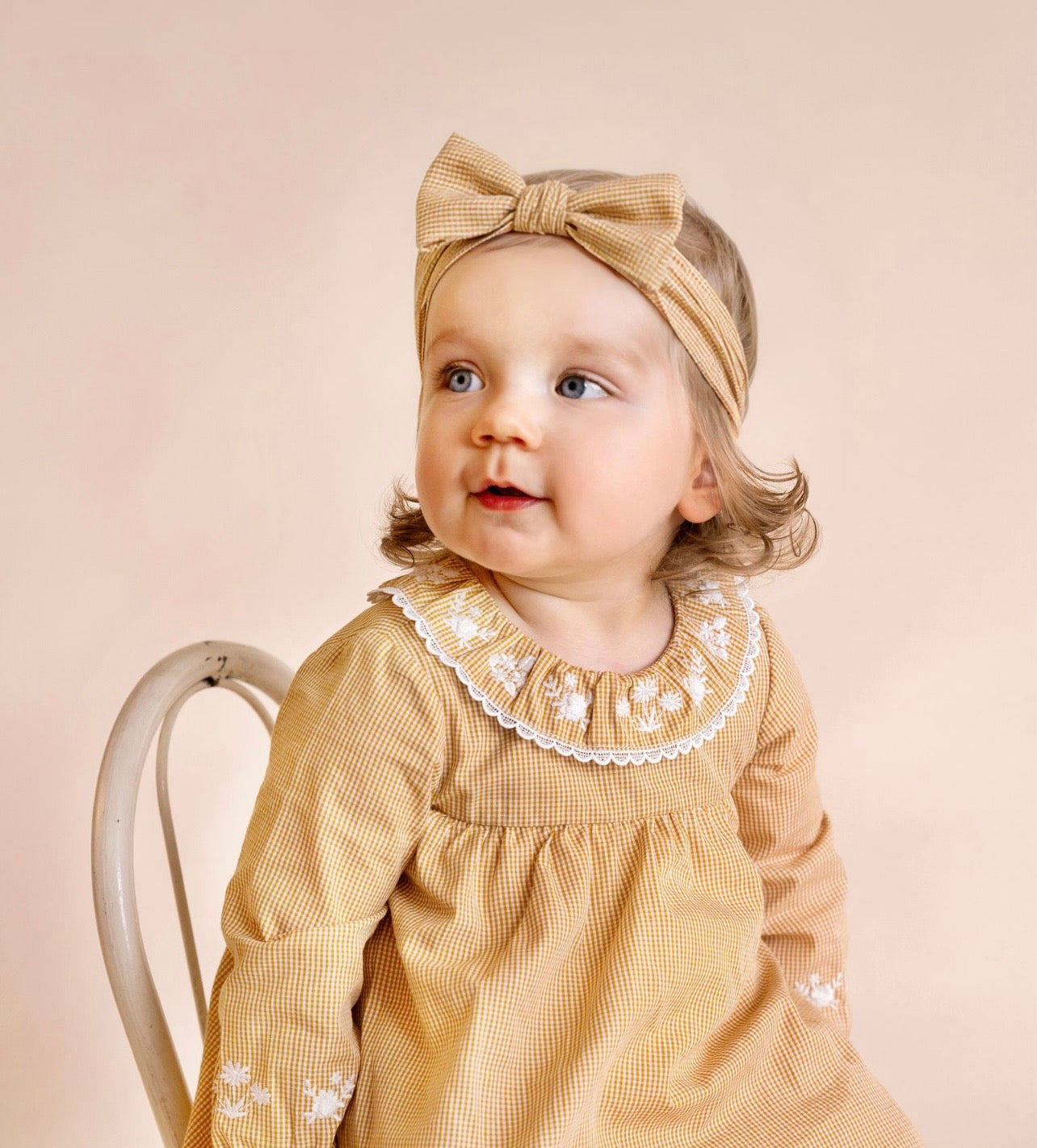Complete their outfit with this charming gingham oversized bow headband, crafted in soft cotton for comfort and easy everyday wear. Designed to stay in place while adding a lovely finishing touch, it’s perfect for dressing up little looks or pairing back with the matching pieces in the collection.