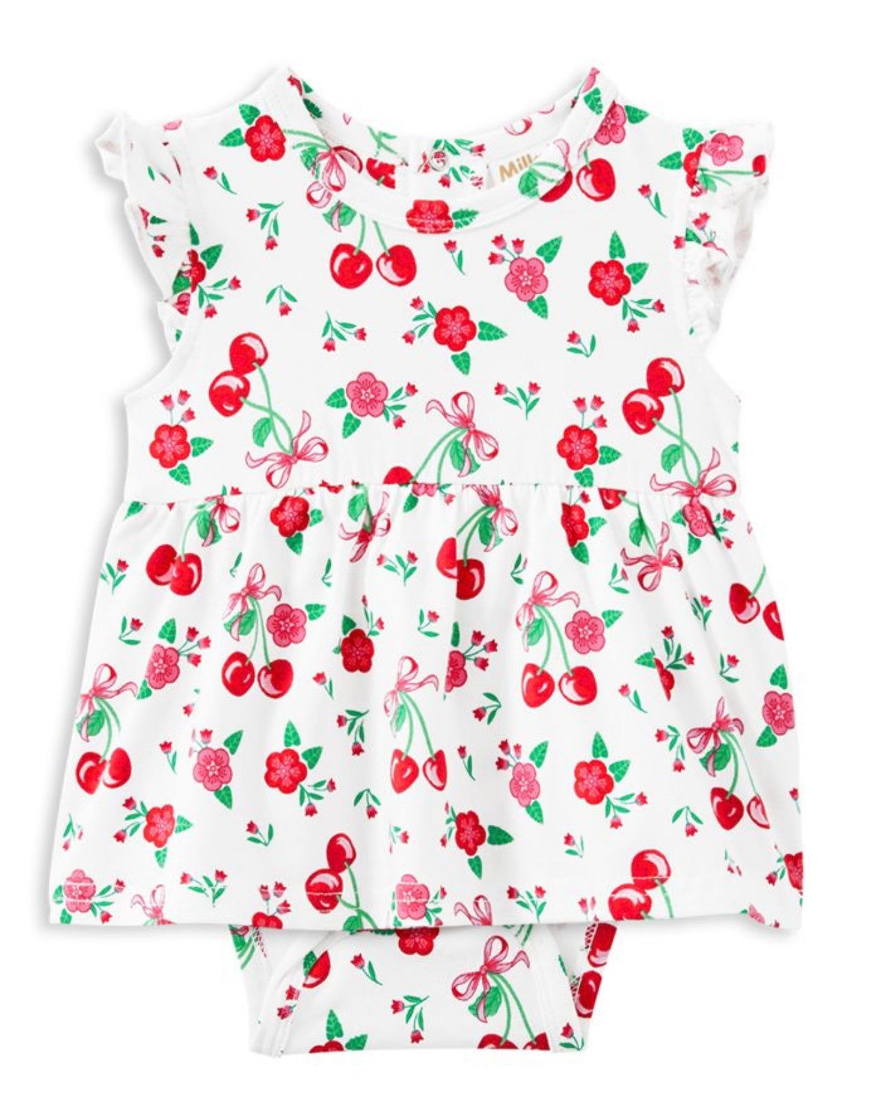 Milky Clothing Sweet Cherry Baby Dress is a charming addition to your little one’s wardrobe. Offering the perfect balance of style and comfort, its fresh white base with a playful red cherry and bow print combines the best of both a romper and a dress. The dress features convenient rear snaps for easy dressing and a floaty hemline for added movement. Crafted from durable, stretchy jersey fabric, this dress is the ideal choice for a comfy and stylish summer outfit.