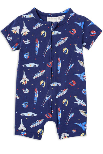 Korango Flower Short Sleeve Zip Romper - Navy Floral or Cloud Floral