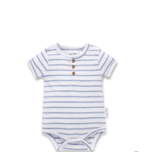 Aster & Oak Blue Stripe Rib Henley Onesie/Bodysuit