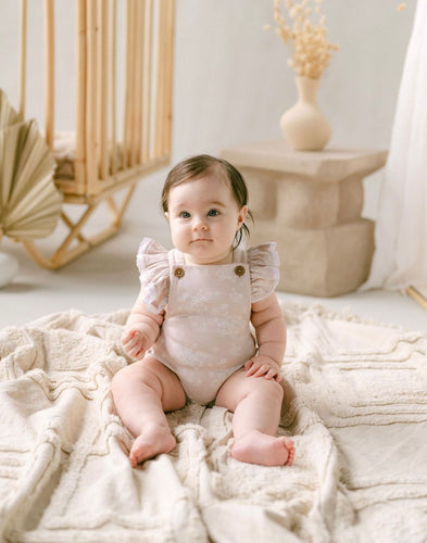 Hux Baby - Gingerbread Frill Playsuit - Cherry/Almond Milk