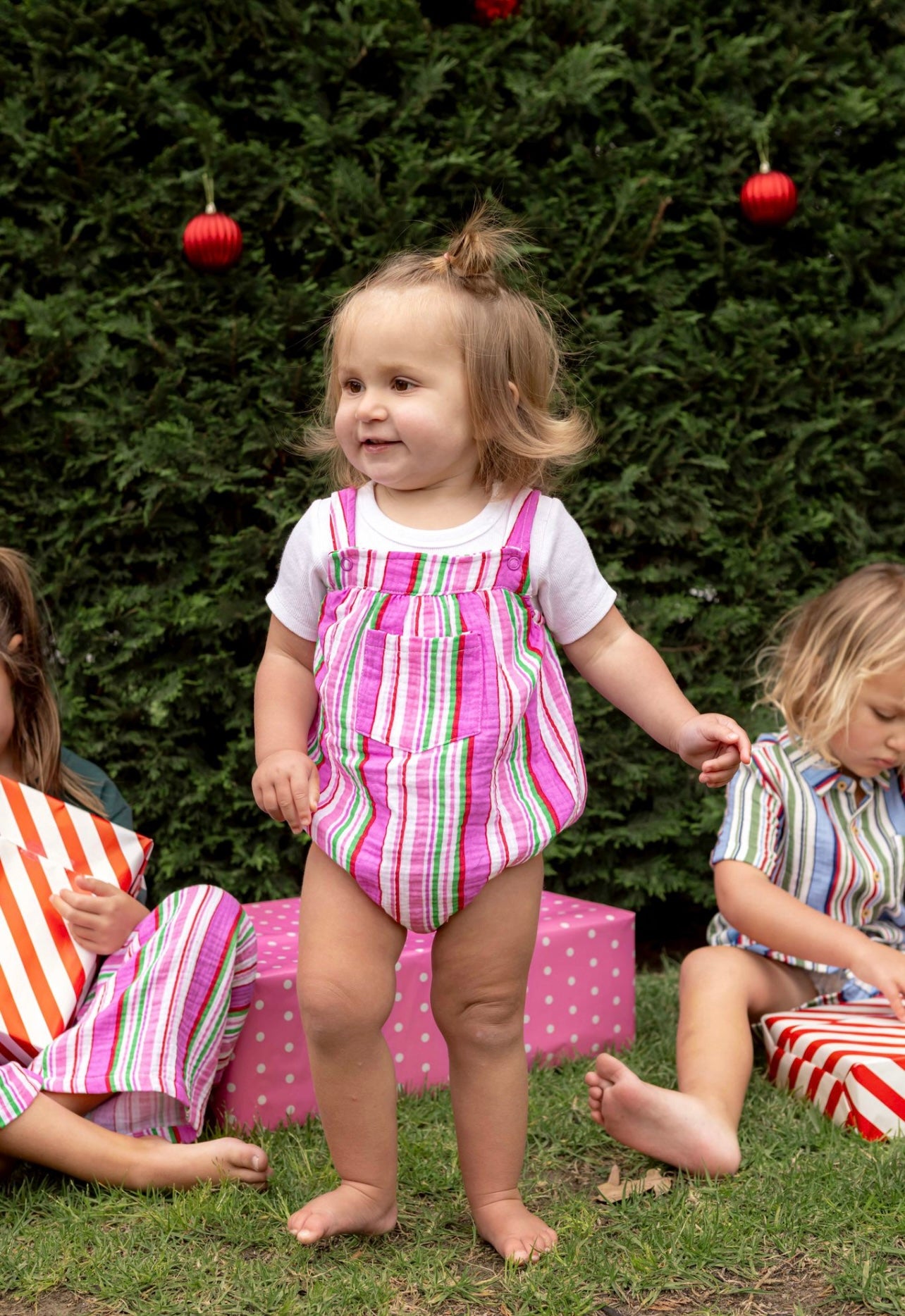 Milky Clothing Crinkle Stripe Playsuit is your go-to for easy, breezy summer days. With cross over shoulder straps, soft crinkle cotton fabric, and a playful vertical stripe, this one-piece wonder is as comfy as it is cute. Just pop it on and you’re ready to go . Lightweight and fuss free, it’s designed for warm weather adventures and all day comfort.