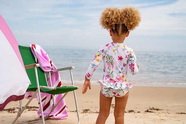 A sweet little piece for long sunny days splashing in the water, our Floral Garden print swim sunsuit combines pretty style with practical comfort. The soft frill details add a playful touch while the built-in detachable aqua nappy offers easy wear for your littlest swimmers.