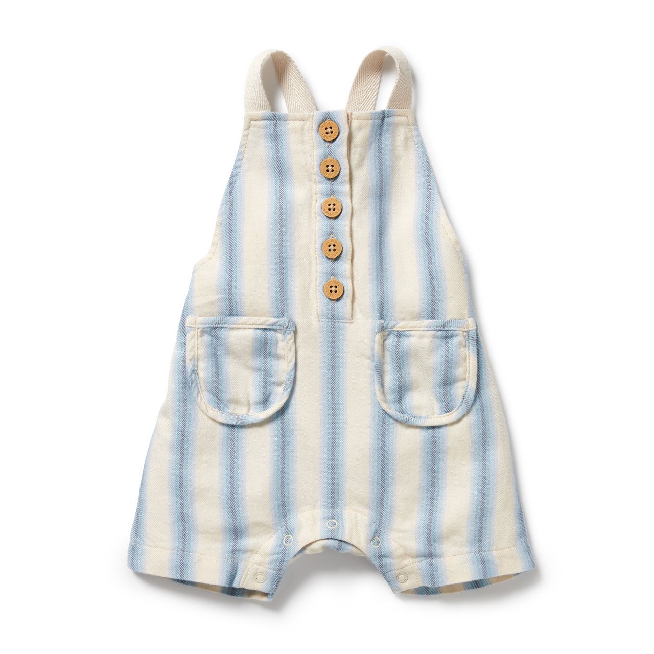 Get ready for fun with our stripe overall. Crafted from organic cotton for a relaxed fit, these short length overall have functional front and back pockets. Soft-washed for ultimate comfort, they're perfect for babies and kids alike. Get your little ones ready for an adventure. Key Features: Loose fit. Functional front and back pockets. Short length. Soft washed. Mock wooden buttons on front placket. Made with organic cotton. Australian owned and designed. Packaged in a bio-degradable bag. Details: 100% organic cotton. Machine washable. Made in India.